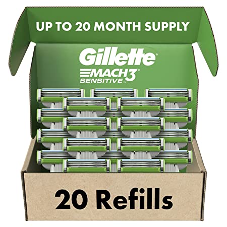 Gillette Mach3 Sensitive Mens Razor Blade Refills, 20 Count, Designed For Sensitive Skin